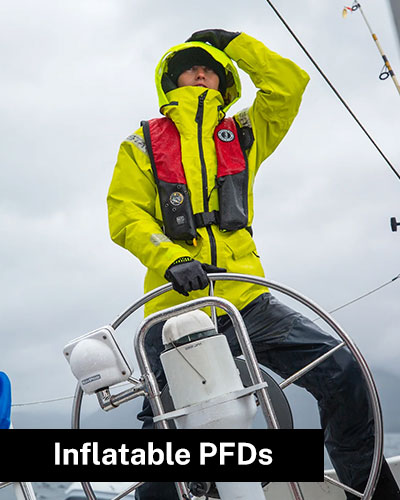 Membrane Inflatable Technology (MIT) replaces traditional PFD inflation bladders for a more lightweight, comfortable and flexible fit. The MIT membrane is protected by a robust nylon face fabric when not inflated. Once deployed, each MIT PFD displays a high-visibility, contrasting fabric for increased safety in a rescue situation.