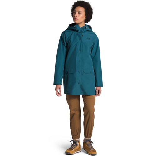 This jacket is great! Kept me totally dry underneath in a downpour without an umbrella. Love the teal color. I usually always get a medium or a large in North Face coats and jackets. I do not like jackets that are fitted so I originally ordered a large and had to send it back for a medium. The large was waaaay to big. For reference I am 5'5", 135 pounds. I am extremely happy with the medium and it is definitely still enough room to be comfortable even with a sweatshirt underneath for added wa...