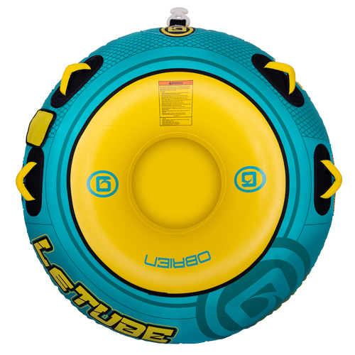 The O'Brien Le Tube 1-Rider Towable can be considered the pioneer in cockpit style disc shaped tubing. Its reputation is known around the world as a durable, trustworthy, long lasting, and overall, just a fun, great tube. Le Tube boasts a tough 24-guage PVC bladder with radio frequency (RF) welded seams for strength and durability. The extra tough bladder is partially housed in a heavy-duty 420-D Nylon cover. Le Tube also offers 4 padded handles with integrated EVA foam knuckle guards that save your skin while you tube for countless hours. Le Tube features a Boston valve for extremely quick inflation and deflation, and a quick connect tow hook assures that you spend your time tubing, not tying knots. Le Tube 56" (142.25 cm) diameter tube is rated for one rider with a maximum weight capacity of 170 lbs. (77 kg) and requires a tow rope with a minimum tensile strength of 1,500 lbs. (680 kg). Tube comes with an owner's manual. Ride the legendary classic; order The Obrien Le Tube today.