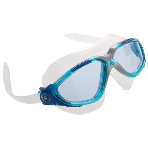Contoured comfort with exceptional style the Vista features the best in Aqua Sphere Aquatic Technology. With a comfortable, leak resistant silicone skirt and a contoured, stylized frame, the Vista has an extremely low profile that virtually eliminates the drag experienced with other swimming masks. The crystal clear wrap around polycarbonate lenses of the Vista also provides 180° degree visibility. This, along with the quick fit one touch buckle system makes the Vista so comfortable and worry free, you will forget you have it on. The Vista Swim Mask provides 100% UVA & UVB protection from the sun's harmful rays. The Vista's lenses are coated for anti-fog and scratch resistance for clear crisp vision.