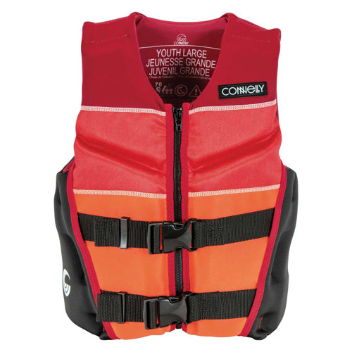 Certified as a Coast Guard approved PFD (Type III and II for infant), this kids swim vest includes thoughtful safety elements: crotch straps and grab straps for child and infant sizes and an infant head pillow for added water support. The Connelly youth classic neoprene vest delivers dependable flotation performance while remaining lightweight, breathable, and quick-drying - perfect for hours of water play.