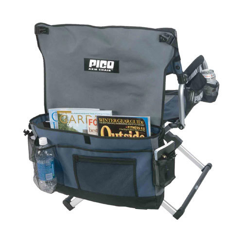 The GCI Outdoor Pico Telescoping Arm Chair folds to the size of a laptop and comes with its own multi-use carry bag. The chair stores conveniently in a messenger-style carry bag with padded shoulder strap pad. Its carry bag doubles as the Chair Back Storage Caddy , with space for magazines, a beverage, sunglasses, etc. This arm chair also includes mesh side media pocket, side storage pocket and a side beverage holder. It is made of lightweight and sturdy anodized aluminium and powder-coated steel. Sit down and relax wherever you go with the GCI Outdoor Pico Telescoping Arm Chair.