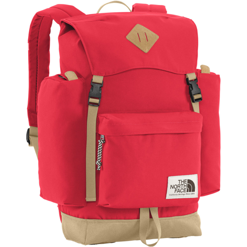 The plan was to get a backpack that I could take on a cruise/tour of Alaska. Activities would include airline travel, hiking, whale watching, rafting and site-seeing from the ship and train. I needed a pack that would carry two 1 liter water bottles, 7 x 50 binoculars in outside pocket, 15 inch laptop in dedicated interior sleeve, hold raincoat, sweatshirt and one day's clothing, fit under airline seat, outside straps, comfortable carry handle and straps, durable construction, good looks and excellent warranty. This pack handily met all of my criteria except one: my binoculars did not fit in the outside rear pocket. Sadly, I had to return the pack because of this shortfall (attempts to verify the dimensions of the pocket prior to purchase were not successful. You just have to try it.) I really wanted this pack to work and I loved everything else about it. If your requirements don't include carrying large binoculars, this may be the pack for you. The material is very durable. The zippers should last forever. The shoulder straps and back pads are excellent and very comfortable (not all packs have such great straps, trust me. You really have to look hard to get really outstanding straps. This pack has them). The main compartment is very open and roomy. It's a top loader so you have to be willing to do a little digging to get to things. The retro look is the best. I don't like the schoolyard backpack look or the seashell look of some hiking day packs. The rucksack layout with it's dedicated exterior pockets are perfect for carrying water bottles, raingear, first aid kits or other items you want to get at quickly and easily. The leather lashdown squares while attractive would not really be very effective. There needs to be two per side or the item you've lashed down will annoyingly swing back and forth as you walk. (The new Kelty Wing is a similar pack with two lash down points per side.) Overall this is a superb pack: outstanding North Face quality materials and construction, awesome retro design, lifetime warranty and super comfortable.