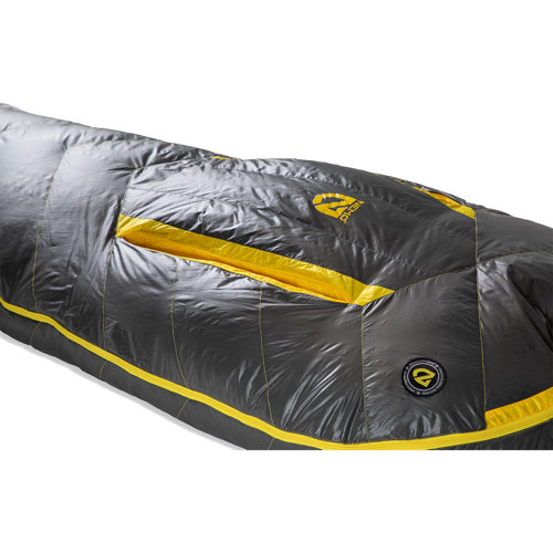In updating the Sonic design, Nemo put a high priority on taking a leap forward in sustainability. The shell and liner fabrics of Sonic are 100% Global Recycled Standard (GRS) recycled and bluesign approved. The premium 800FP hydrophobic down is 100% Responsible Down Standard (RDS) certified. Nemo also took years of history in the field to make detailed upgrades including massaging the profile of the bag, redesigning the draft collar, and bolstering the draft tubes.