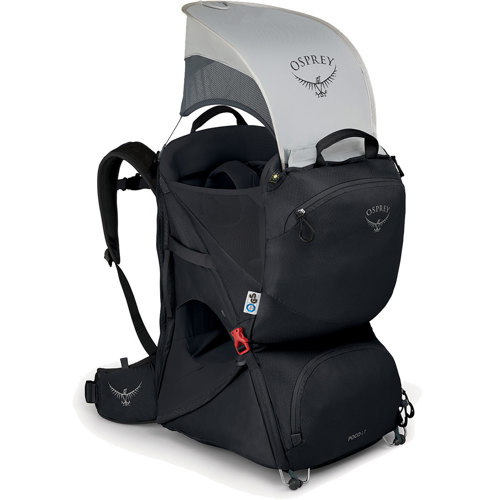 I really love this carrier. It has a much smaller footprint than the poco plus which is awesome for every day hikes and easy car storage. My baby loves the carrier and my dogs are grateful I have somewhere to store water and treats for them. I wish it had some of the minor features that the plus has like the hand mirror to see babe, side mesh pockets, better storage in the waist belt and stirrups. Even with those drawbacks, I'd still prefer this over the plus due to the smaller footprint. Overall, highly recommend for those who are hiking with baby and want a little storage but not a massive pack. Also, we love the rain cover! Osprey, can you design a bug net cover for this?